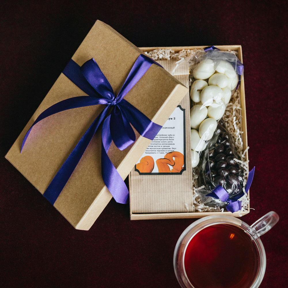 Мягкий вкус черного чая, дополненный классическим сочетанием орехов в шоколаде, станет прекрасным способом выразить вашу благодарность или идеально дополнит ваш основной подарок.